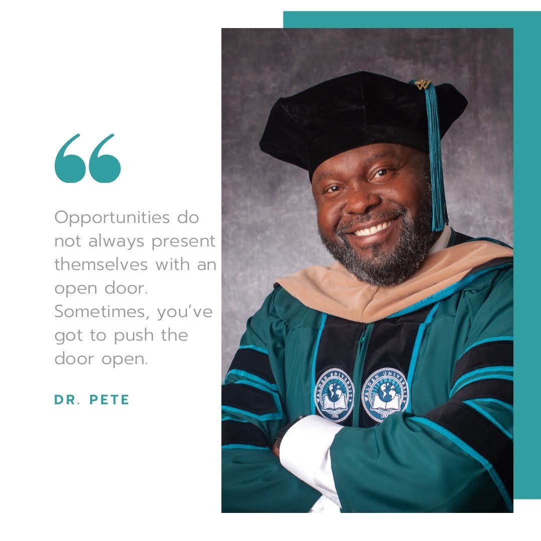 Dr. Pete is very dedicated and knows what it takes to finally achieve goals. It took him almost 20 years to get his Bachelor’s degree. Between raising children, army deployments, and life’s challenges, Dr. Pete knew he had to make small short purposeful movements until he achieved his goal to get his degree. Since then, he completed a Master’s in Business Administration, and in 2021 achieve the epitome of education – a Doctorate in Business Administration with a concentration in Leadership.